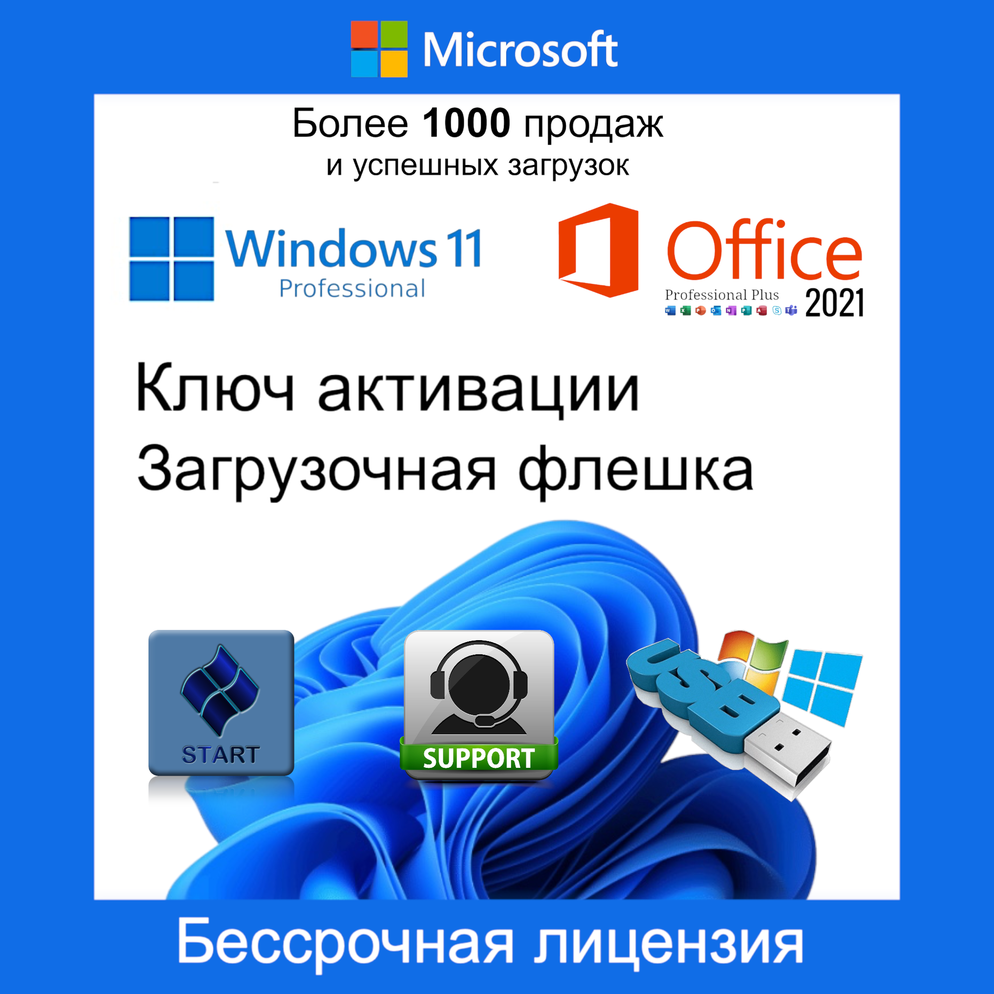 10 цен на Microsoft установочный USB Windows 11 pro + Office неограниченное количество установок 1 ПК RU