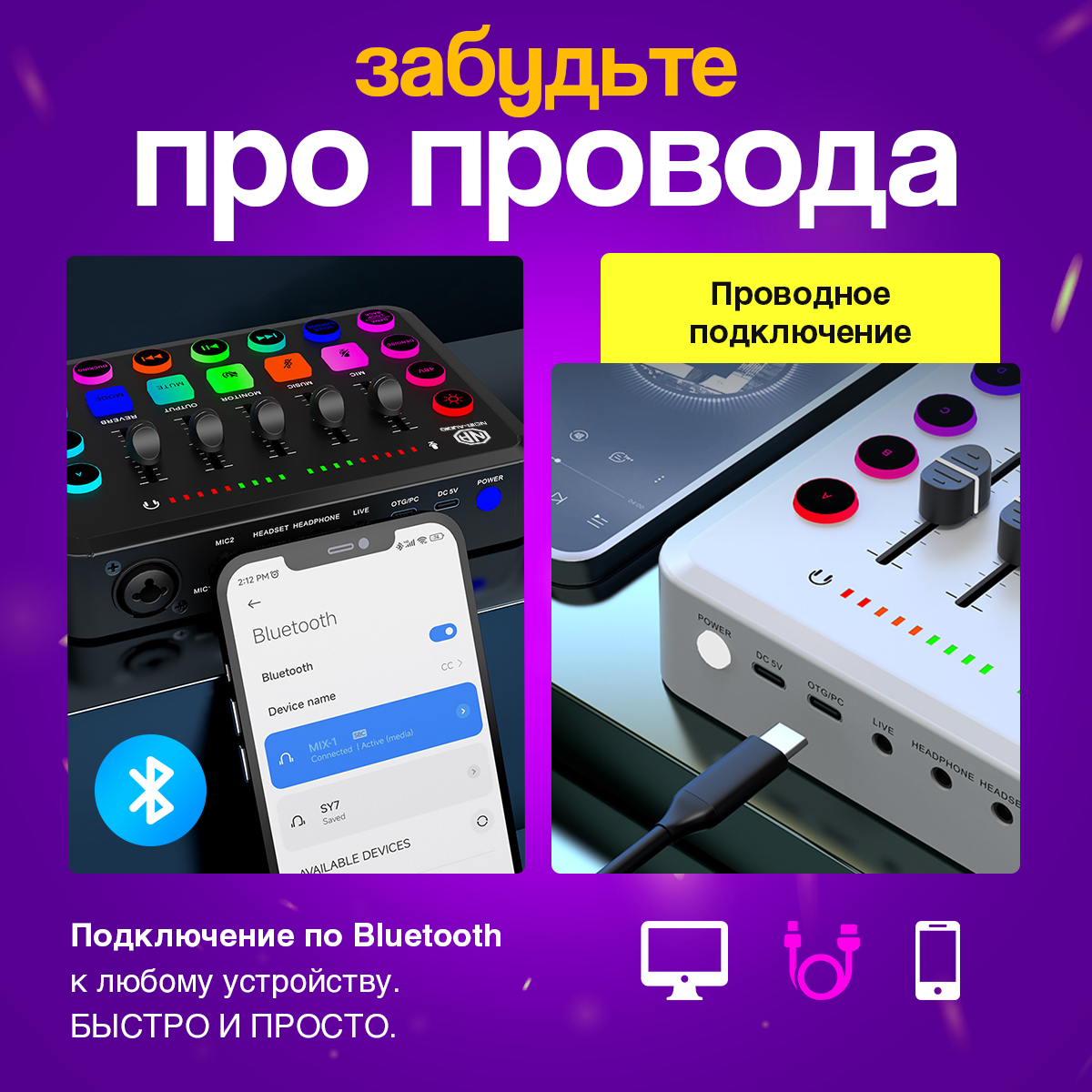 10 цен на Внешняя звуковая карта USB NOIR-audio MIX-1 с микшером и голосовыми эффектами