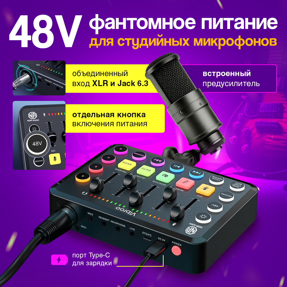 Внешняя звуковая карта USB NOIR-audio MIX-1 с микшером и голосовыми эффектами информация:
