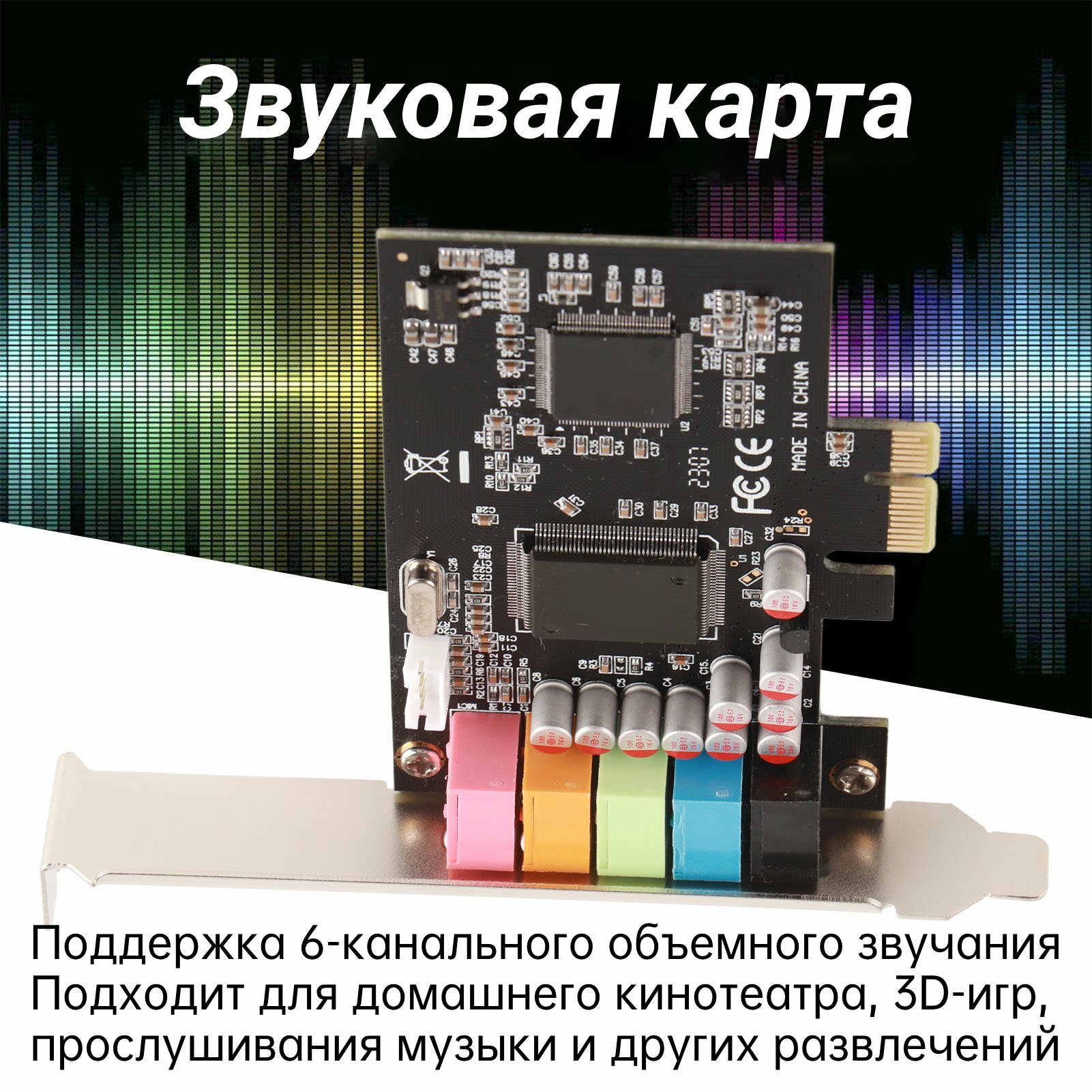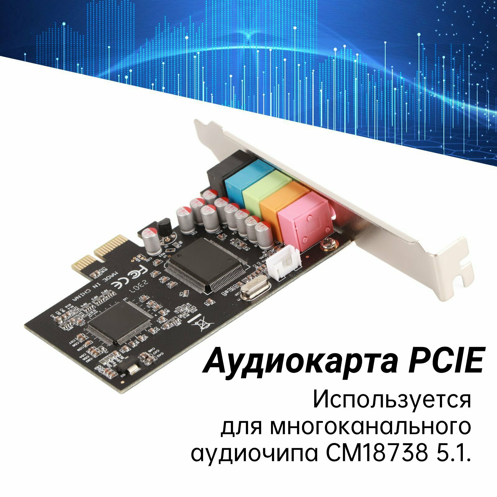 | Дополнительная информация | Розовый порт: Микрофонный вход Оранжевый порт: Линейный вход Зеленый порт: Передний выход Синий порт: Задний выход Черный порт: Басовый Применимое оборудование: Персональные компьютеры со слотами PCI-Express, поддерживающие 32/64-разрядные версии Windows 7/Vista/XP и другие системы. |