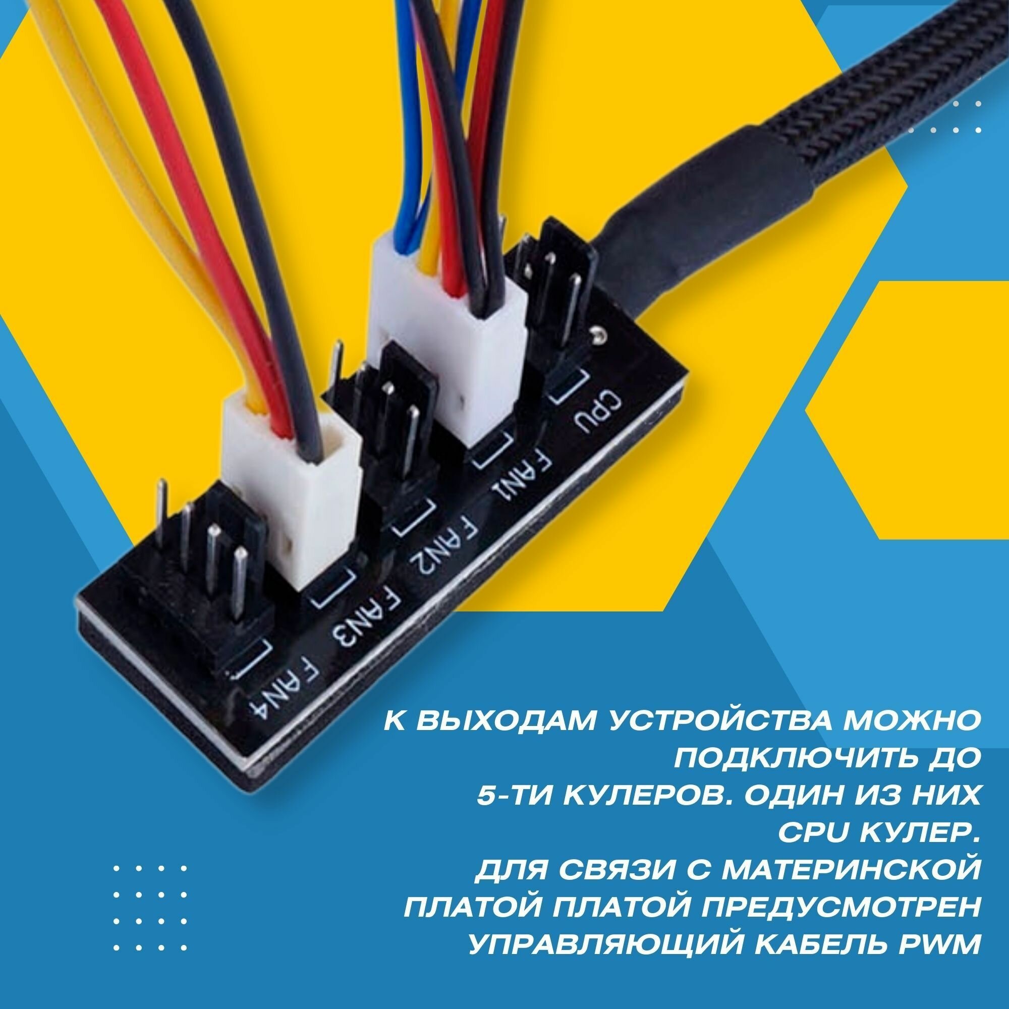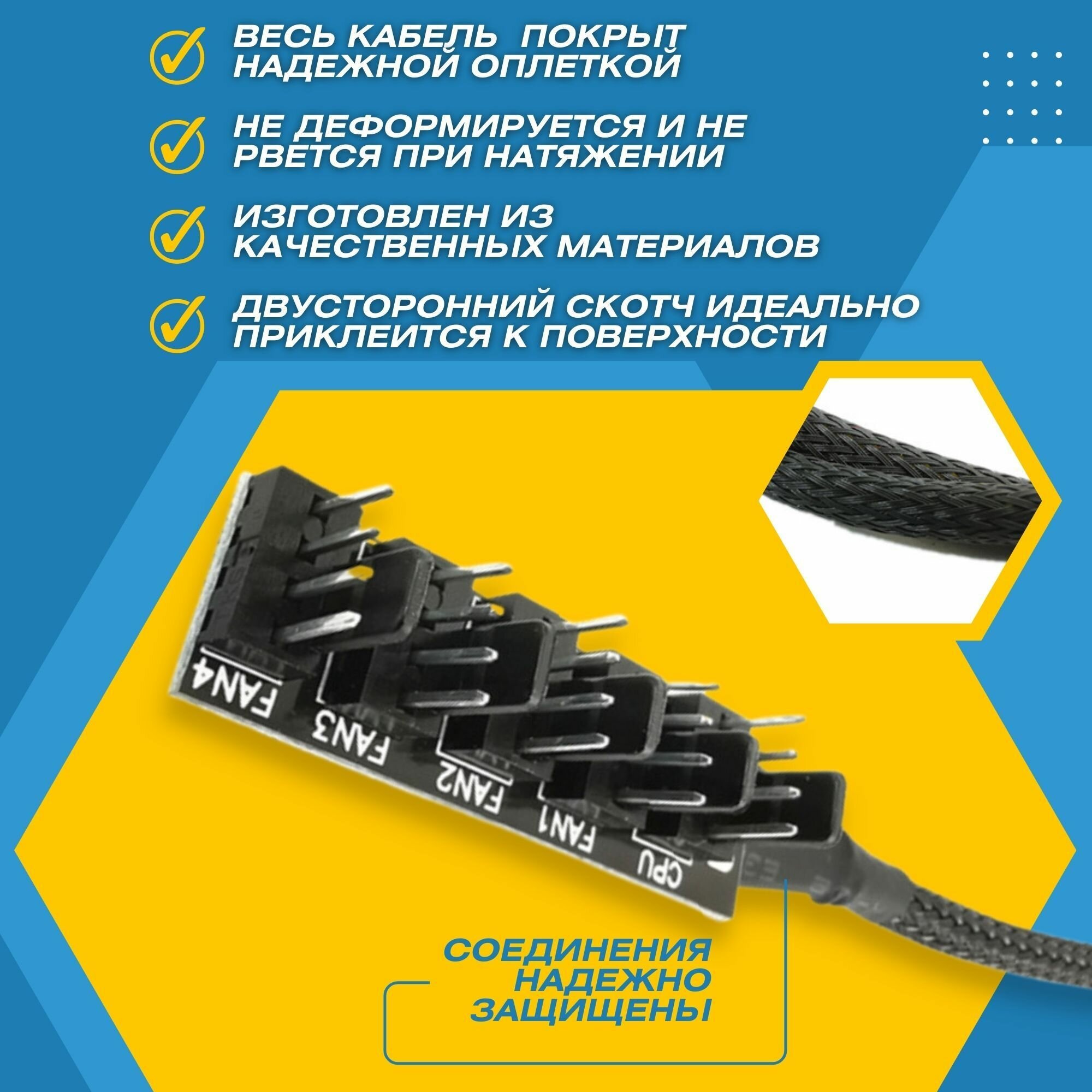10 цен на Кабель удлинитель разветвитель Hub PWM для вентилятора ПК 1х 4pin - 5х 4pin, 40 см (Черный)