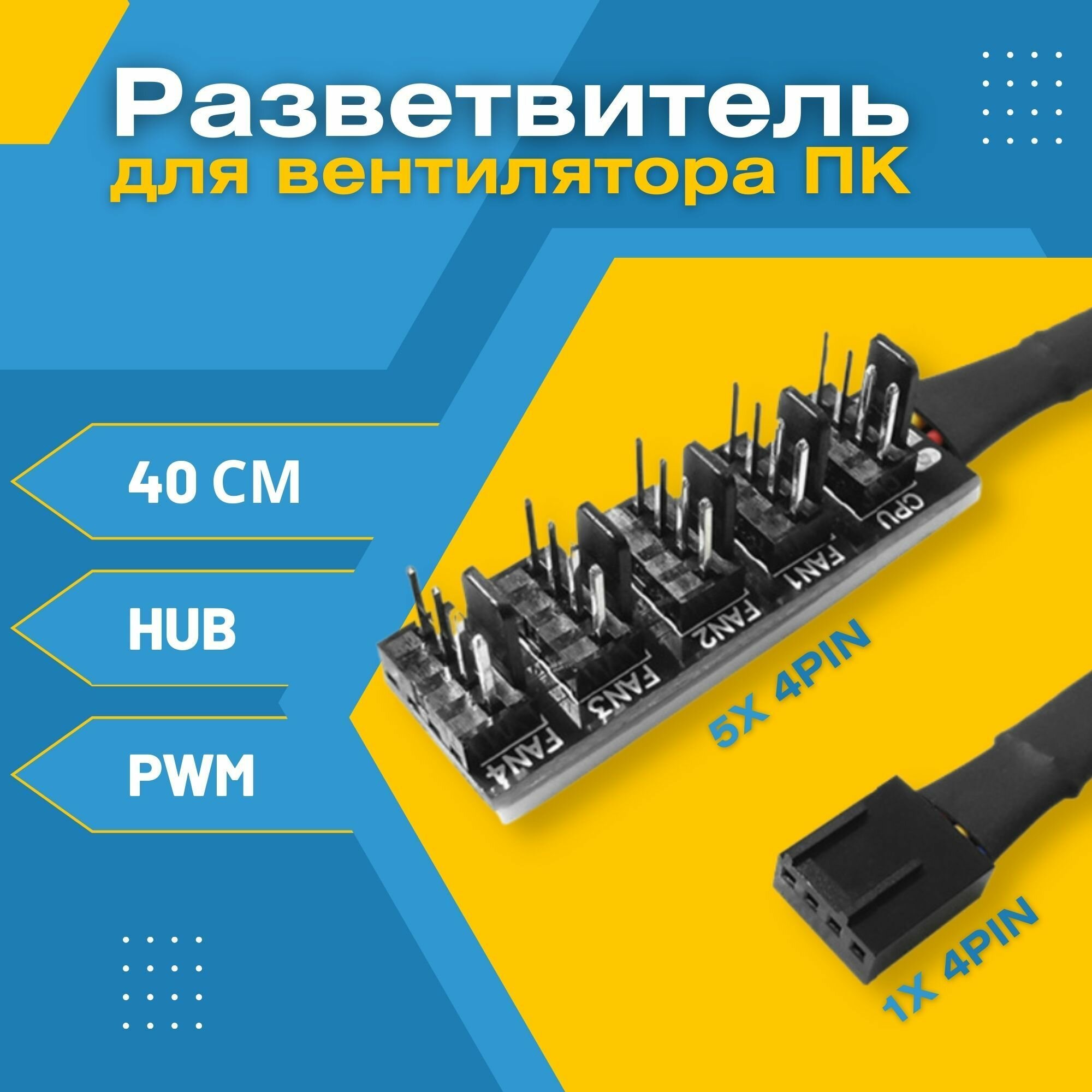 Отзывы на Кабель удлинитель разветвитель Hub PWM для вентилятора ПК 1х 4pin - 5х 4pin, 40 см (Черный)