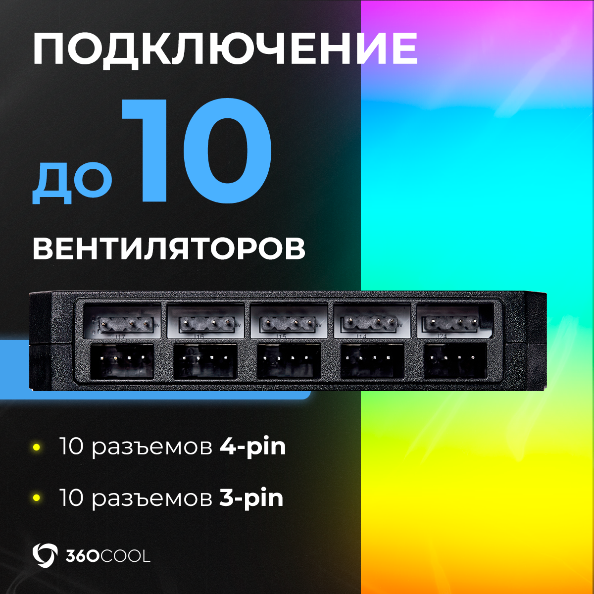 10 цен на Контроллер к ПК с подсветкой ARGB для вентиляторов 4-Pin/светодиодных лент 3-Pin, синхронизация с мат платой, подключение до 10-ти кулеров, черный