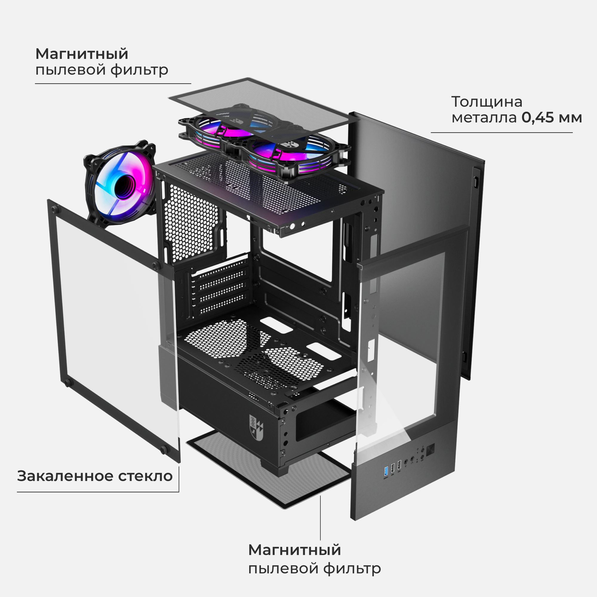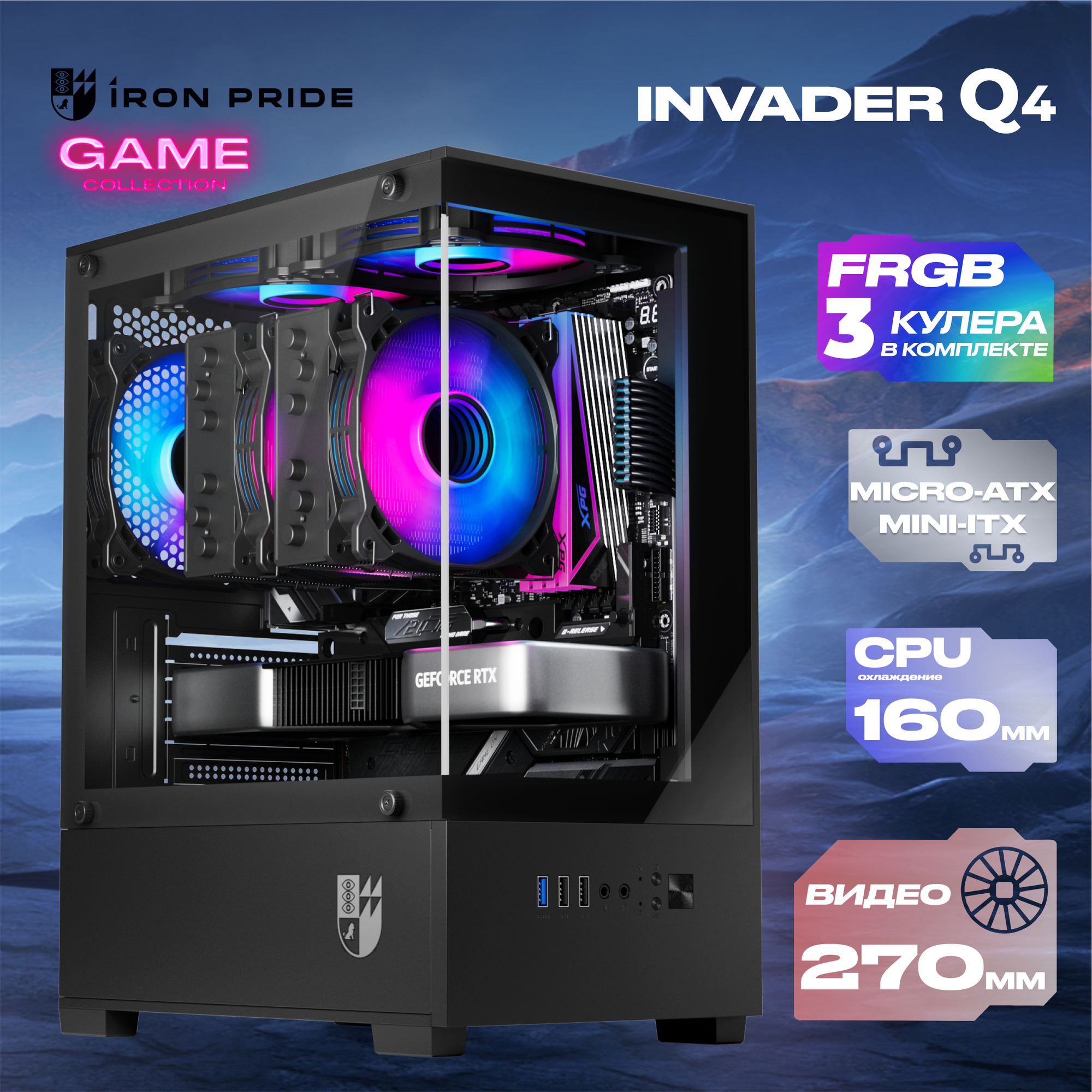 Игровой корпус для компьютера Iron Pride Invader Q4 + Micro-ATX, Mini-ITX + 3 FRGB вентилятора + закаленное стекло, Черный информация: