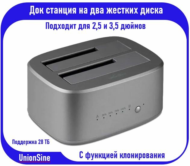 Отзывы на Док-станция на два HDD, SSD 2.5"-3.5" UnionSine OfficeClone USB 3.0 с функцией клонирования