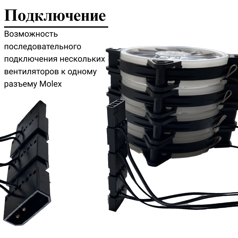 Вентилятор для корпуса компьютера 120мм RGB, светящийся, двухсторонний информация: