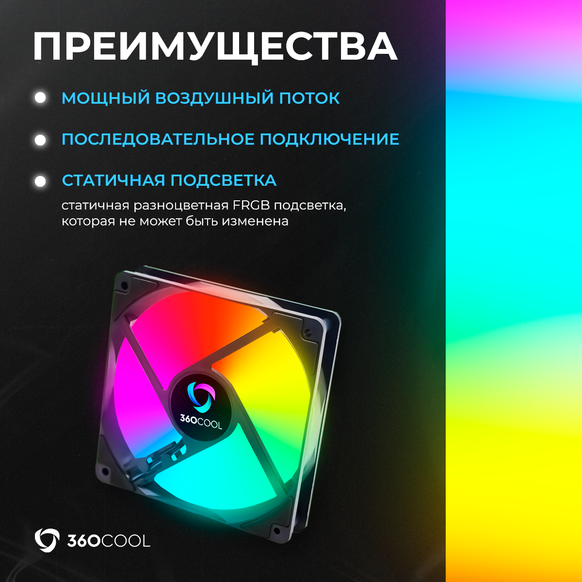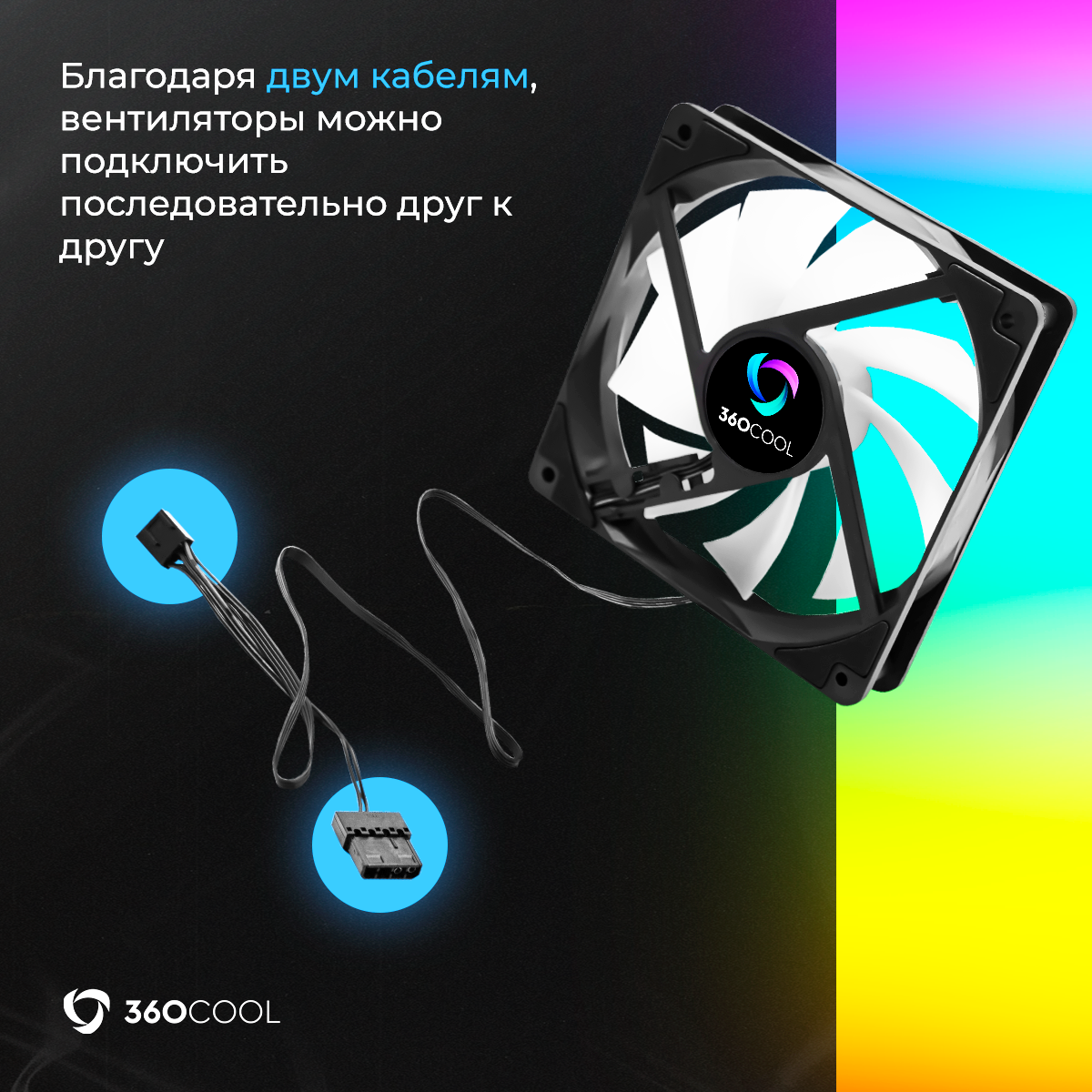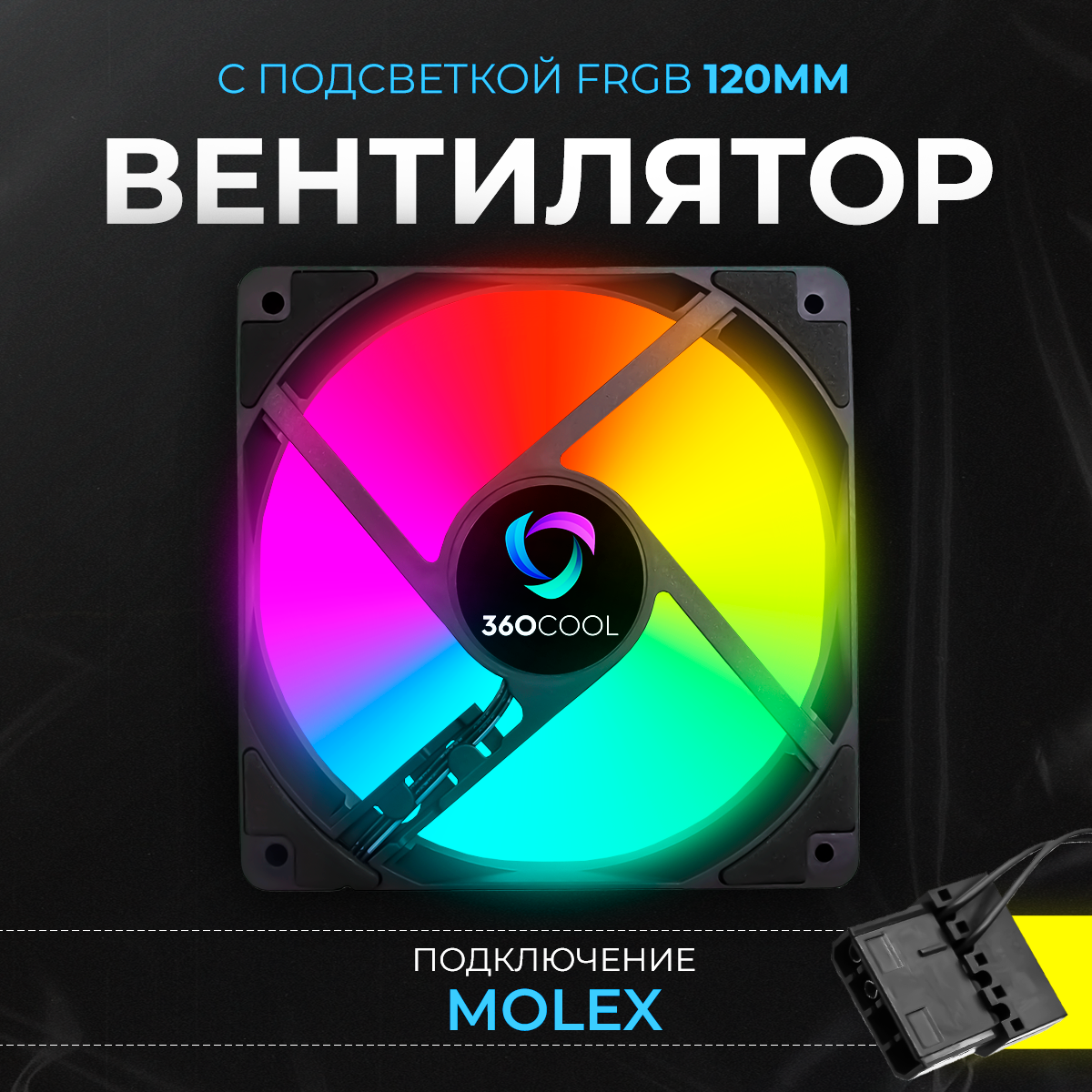 Корпусный вентилятор 360COOL для охлаждения ПК с подсветкой FRGB, подключение Molex и 3-pin, черный, 120мм информация: