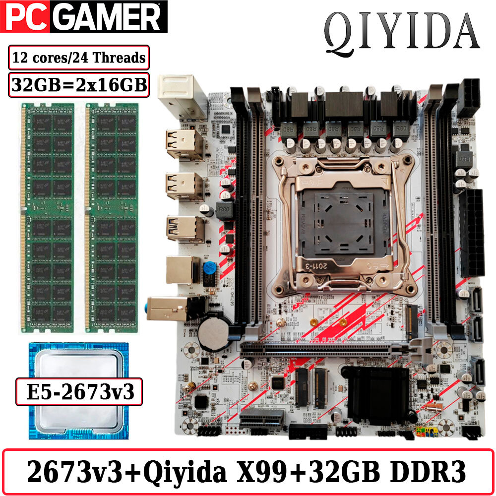 10 цен на Комплект материнская плата Qiyida X99 + Xeon 2673V3 + 32GB DDR3 ECC 2x16GB