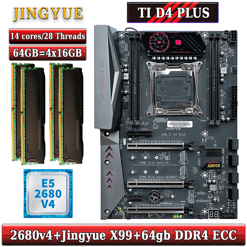 10 цен на Комплект материнская плата Jingyue X99 Titanium D4 + Xeon 2680V4 + 64GB DDR4 ECC 4x16GB Black