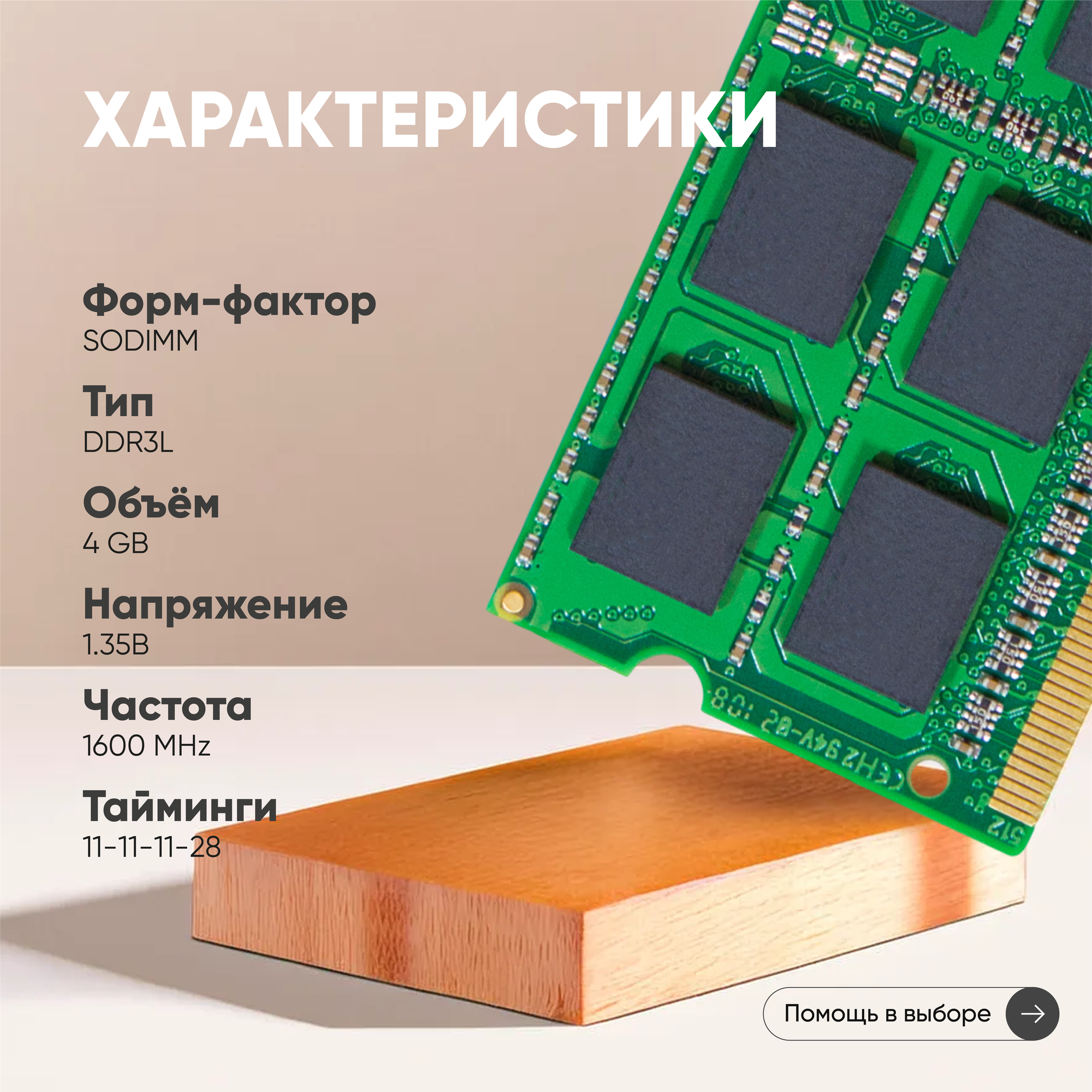 Модуль памяти Kingston SODIMM DDR3L, 4ГБ, 1600МГц, 1.35В, PC3-12800, CL11 11-11-11-28 информация: