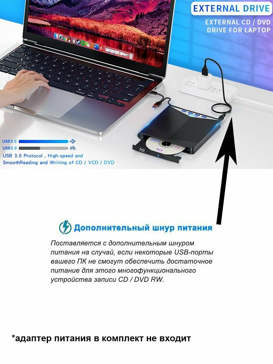Внешний дисковод для ноутбука компьютера ПК CD DVD оптический привод USB Хаб 7в1 информация: