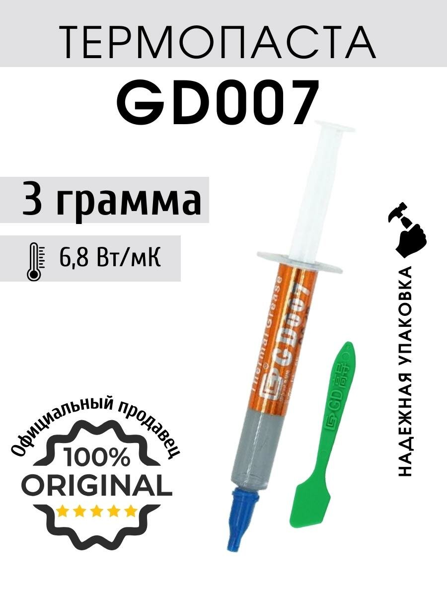 Термопаста GD007 в шприце 3 грамма с лопаткой для процессора ноутбука компьютера, теплопроводность 6,8 Вт/мК информация: