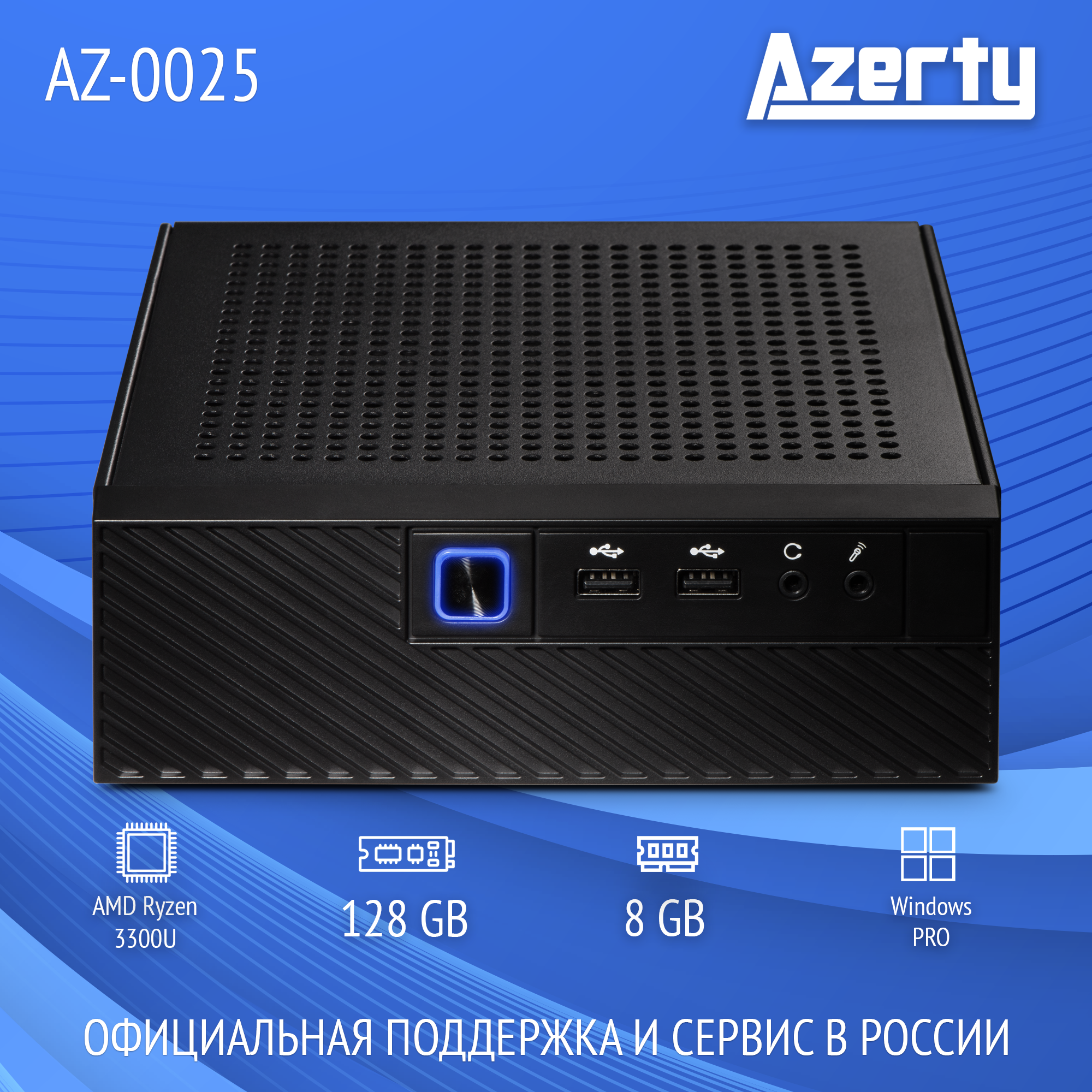 Мини ПК Azerty AZ-0025 (Ryzen R3 3300U 4x2.10 ГГц, 8 Гб DDR4, 128 Гб SSD, Wi-Fi, BT) информация: