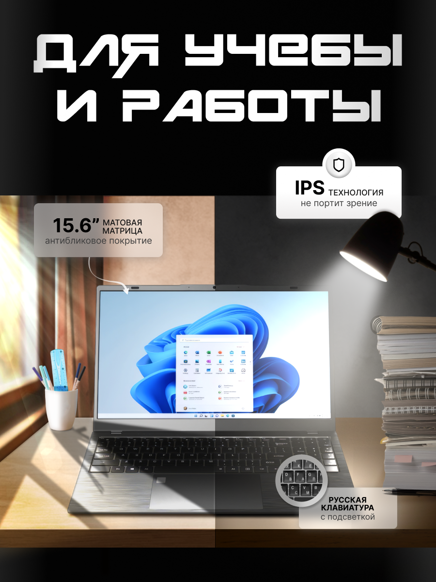 15.1" Ультрабук для работы и учебы, Notebook, RAM 16 ГБ, SSD 1ТБ, IPS Full HD 1920x1080, Intel N5095, Windows 11 pro, цвет Mid Gray, русская раскладка