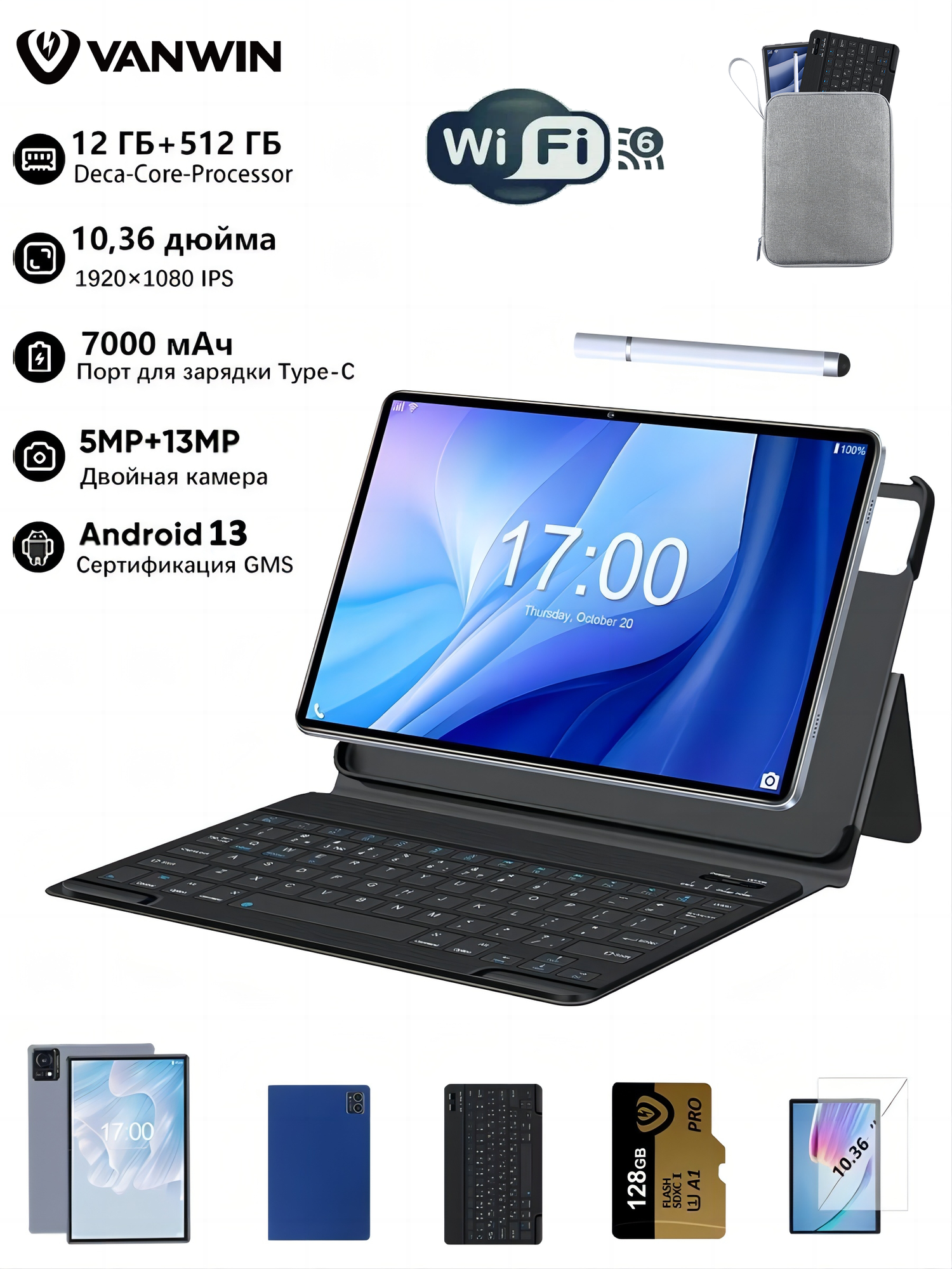 Планшет 10.36'' ,--- Android 13,планшет андроид , с клавиатурой,стилус, WIFI, 12ГБ+512 ГБ информация: