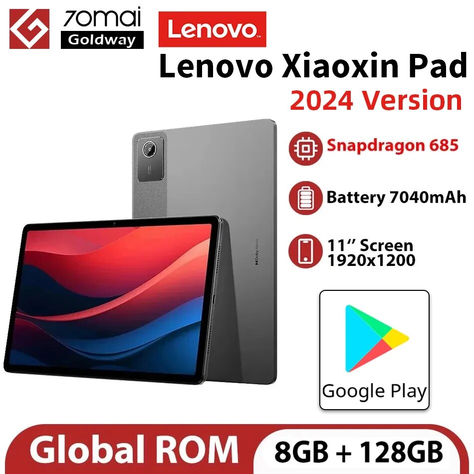 Планшет Lenovo Xiaoxin Pad 2024, глобальная версия, 8 ГБ + 128 ГБ, 11 дюймов, Snapdragon 685, GPS, Wi-Fi, Android