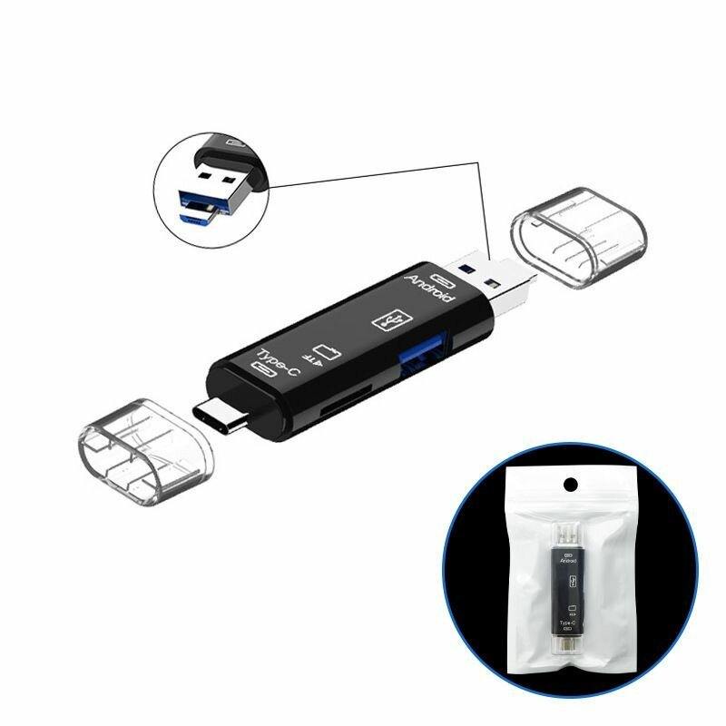 Отзывы на Картридер OTG USB 2.0 Type A, Type C, Micro USB, Tf/SD переходник для чтения карт 5 в 1