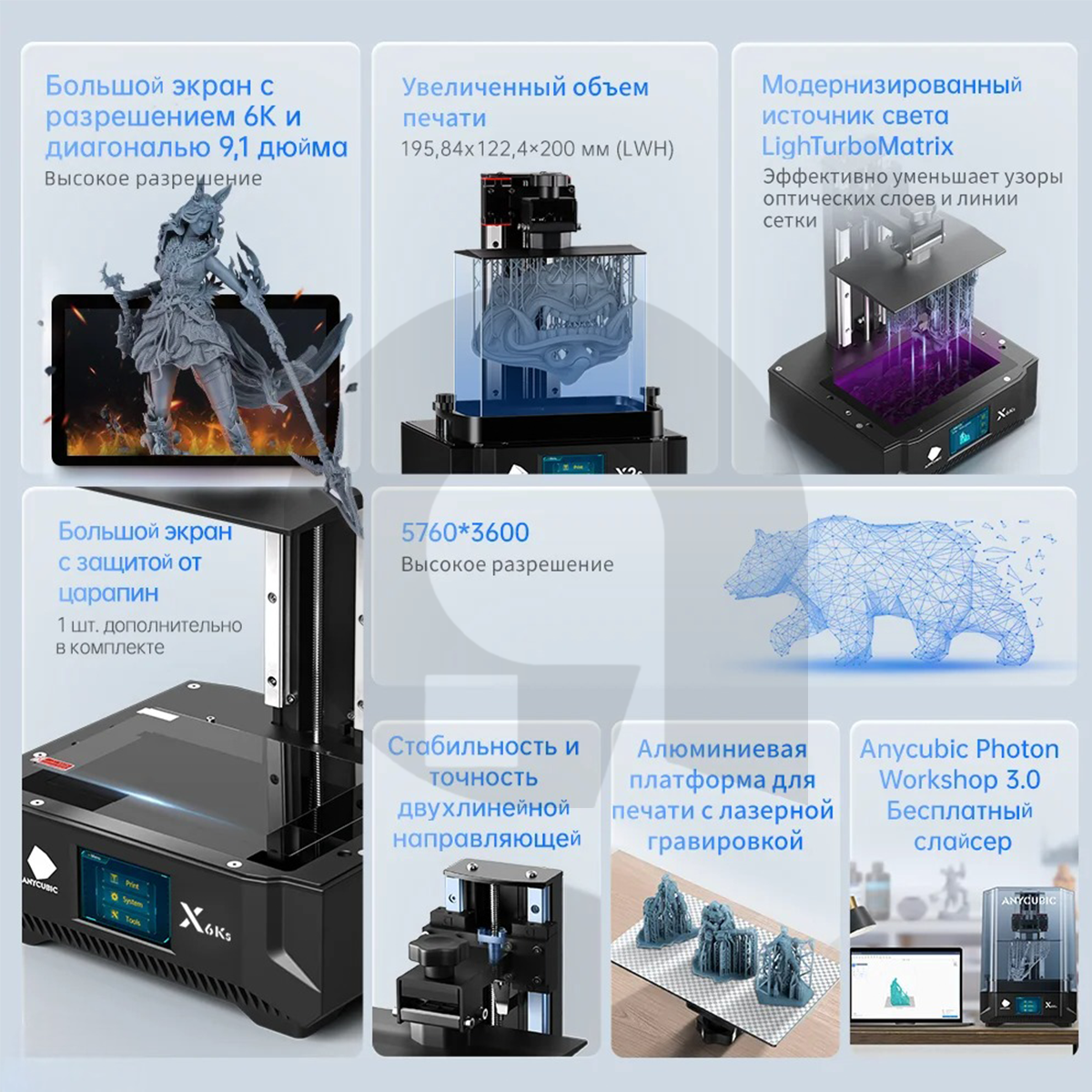 3д принтер ANYCUBIC Photon Mono X 6Ks, 195х122х200, SLA, ЖК-дисплей, 150 мм/сек скорость печати информация: