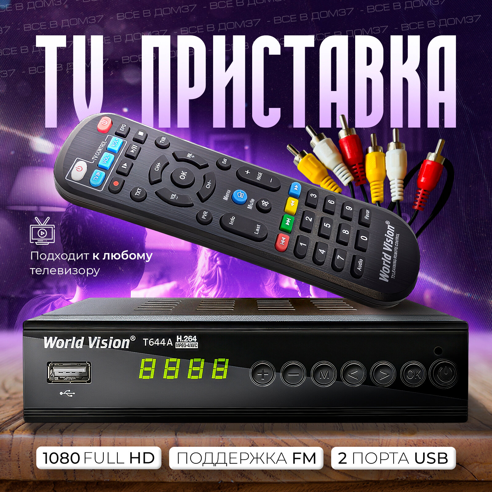 10 цен на Цифровой приемник World Vision T644/ цифровая приставка с дисплеем и кнопками управления на панели с обучаемым пультом ДУ