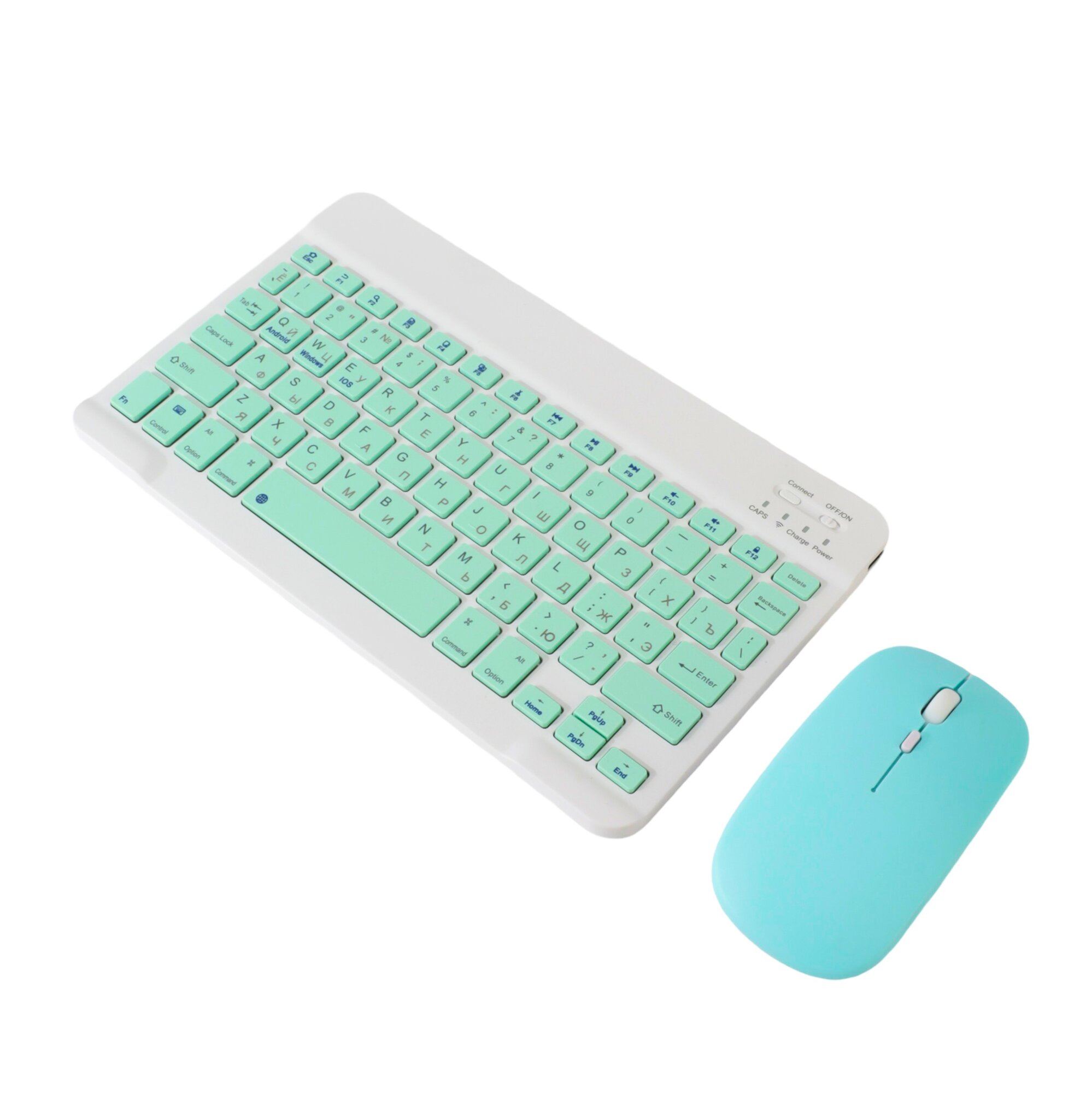 10 цен на Клавиатура + мышь, Bluetooth, компактная для смартфона, планшета, компьютера, беспроводная с зарядкой, Vivacat, бирюзовый