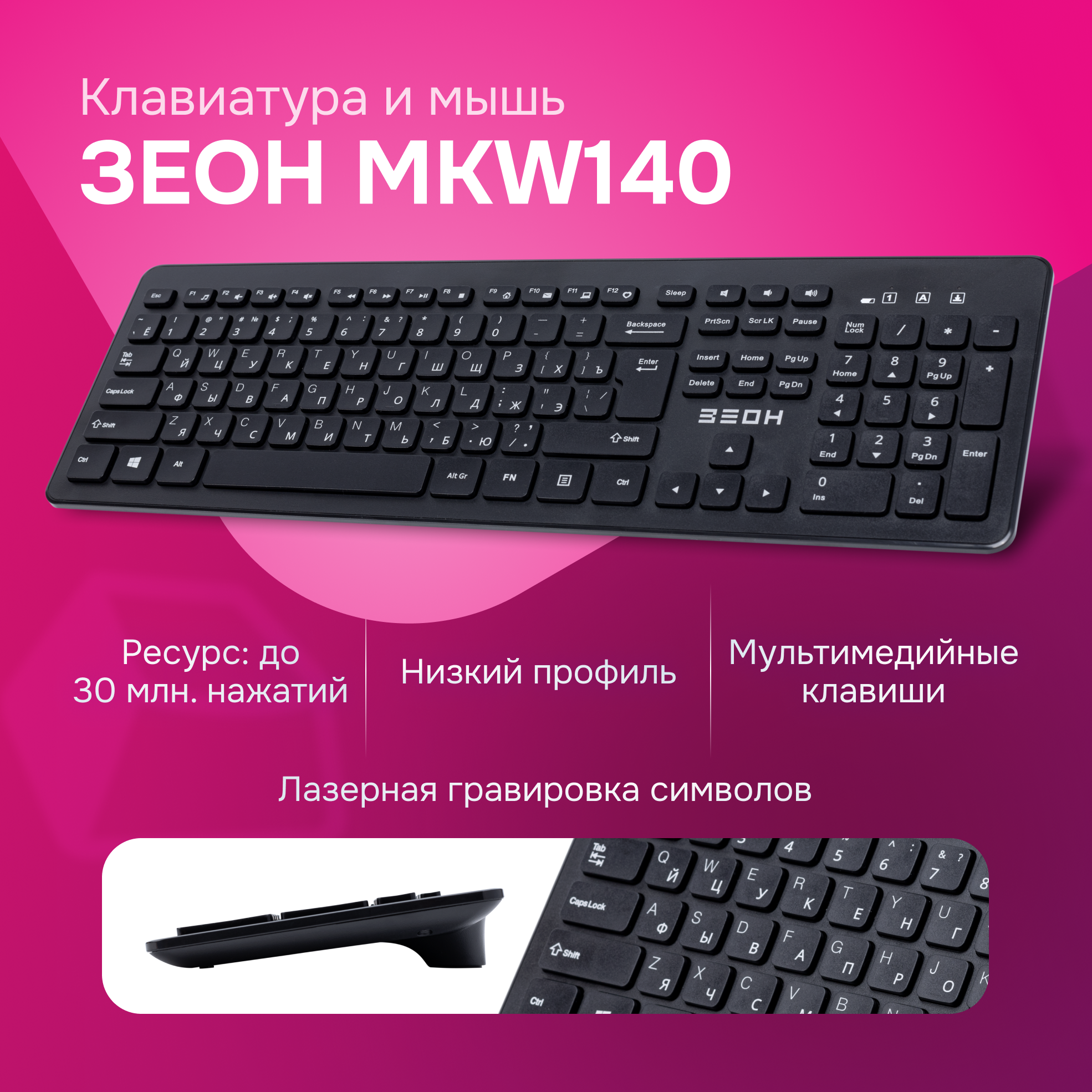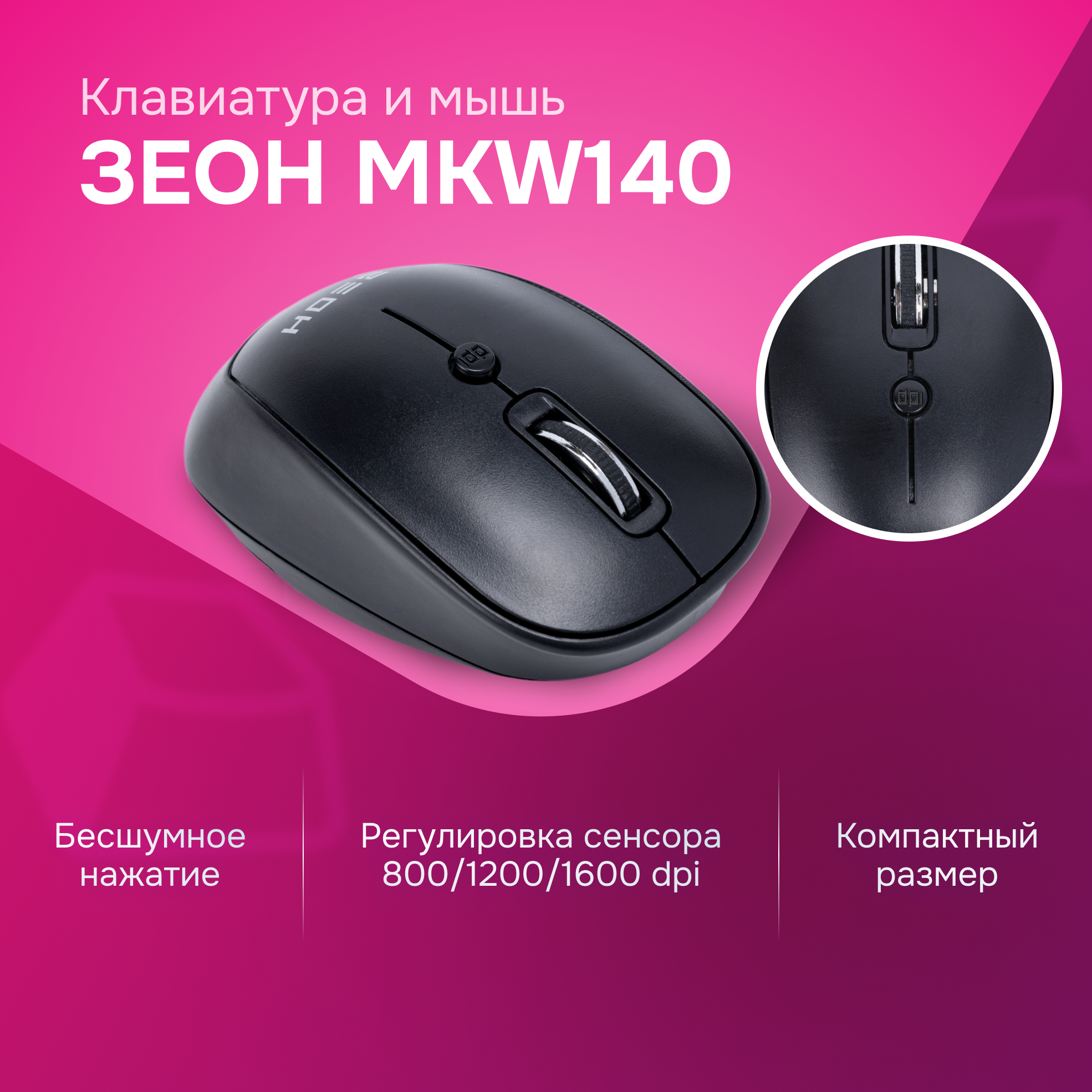 Комплект клавиатура + мышь Зеон MKW140 беспроводной, черный информация: