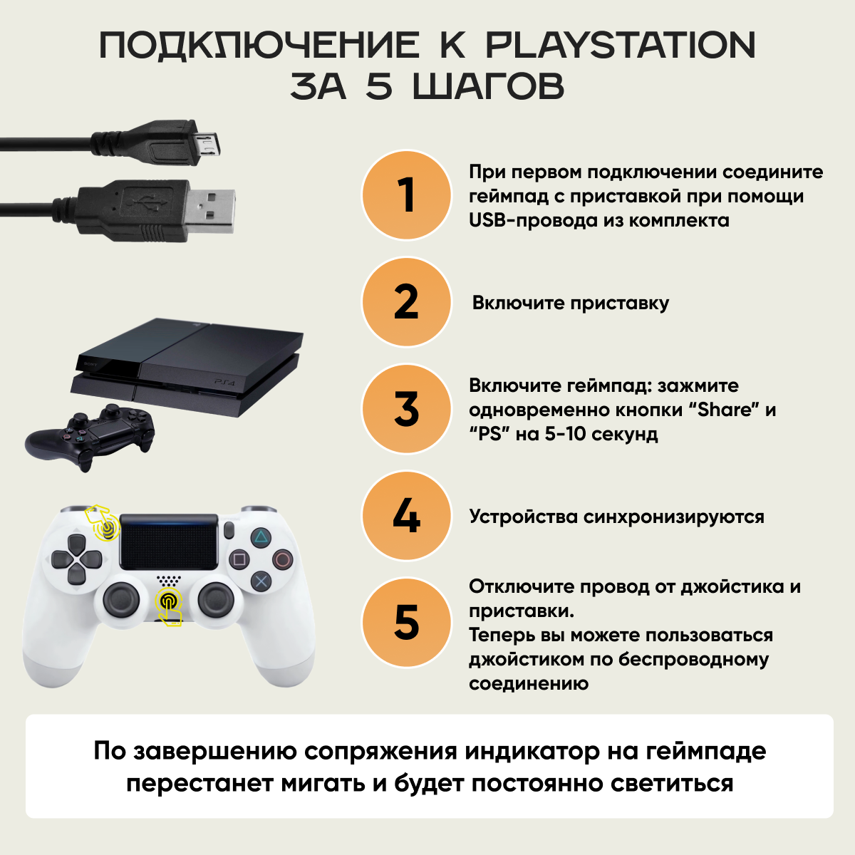 Отзывы на Геймпад для PS4 Белый/ Джойстик контроллер для Playstation 4, PC, Android, iOS + провод 1 метр
