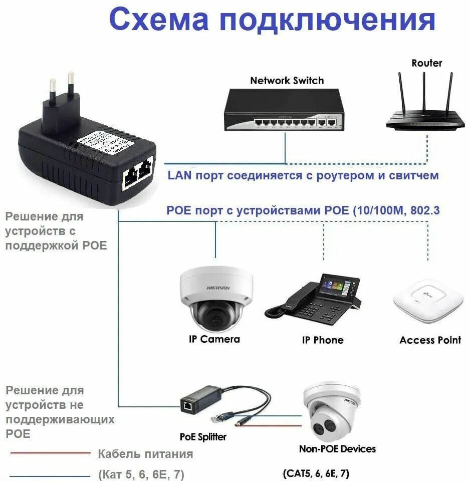 Адаптер PoE (PoE инжектор) 48 вольт (48В,24Вт,0.5A)