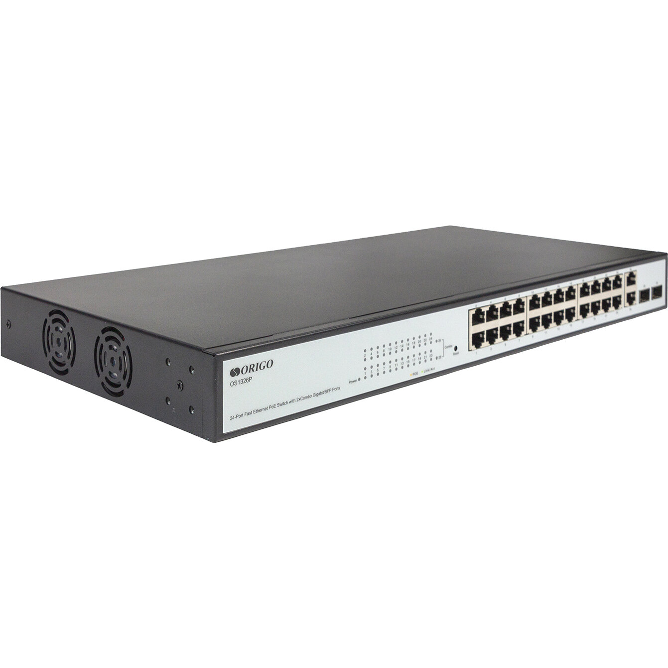 10 цен на ORIGO OS1326P/280W/A1A Настраиваемый L2 PoE-коммутатор 24x100Base-TX PoE+, 2xCombo 1000Base-T/SFP, PoE-бюджет 280 Вт