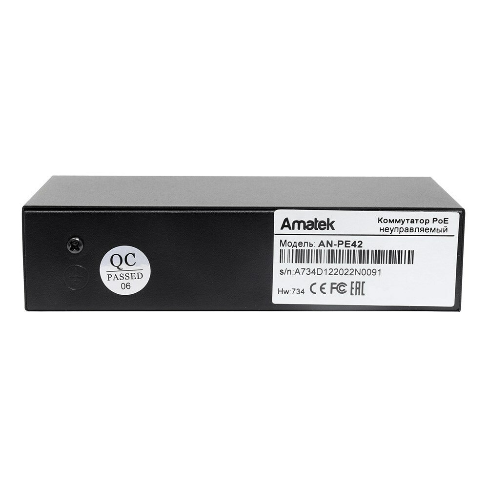 Коммутатор 6-портовый Amatek AN-PE42 100 Мбит/с L2 с HiPoE до 60Вт 7000734