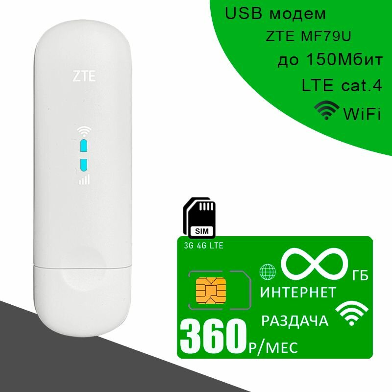 Комплект модем ZTE MF79U + сим карта с безлимитным интернетом за 360р/мес. информация: