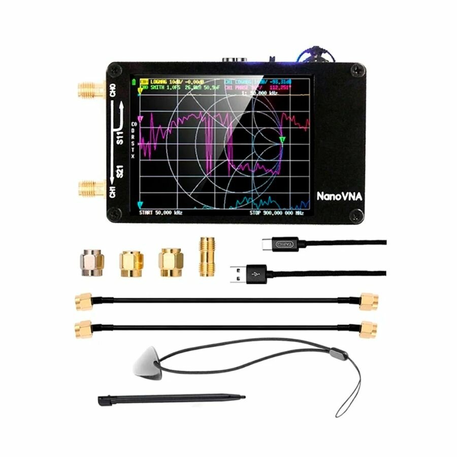 Дополнительная информация | Векторный анализатор NanoVNA, 2x20 см SMA штекер-штекер RG174 RF кабель - 2 шт, Кабель USB Type-C, Стилус-ручка, Шнурок, SMA простой набор калибровки, Инструкция |