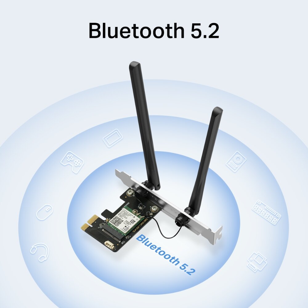 Отзывы на Mercusys MA80XE Адаптер PCI Express с поддержкой Wi-Fi AX3000 802.11 a/b/g/n/ac/ax и Bluetooth 5.2 OEM