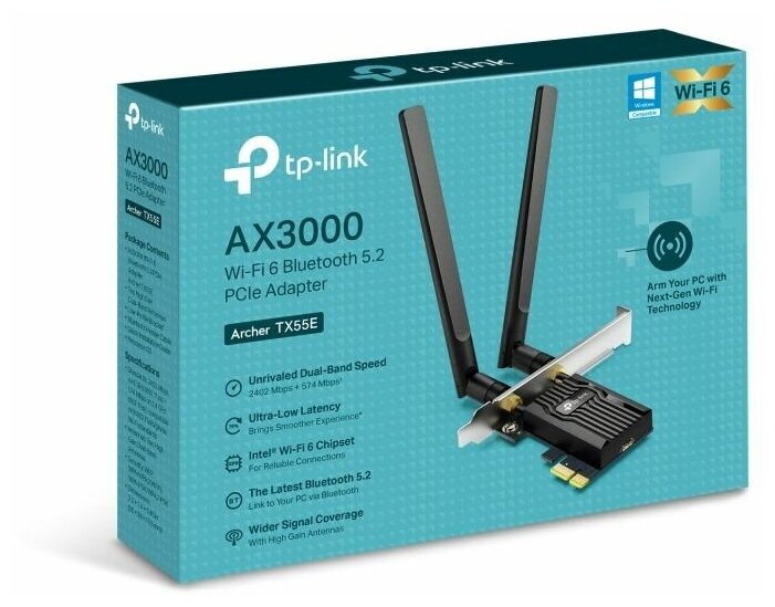 Отзывы на Сетевой адаптер PCI Express TP-LINK AX3000 Wi-Fi 6 Bluetooth 5.2 (Archer TX55E)