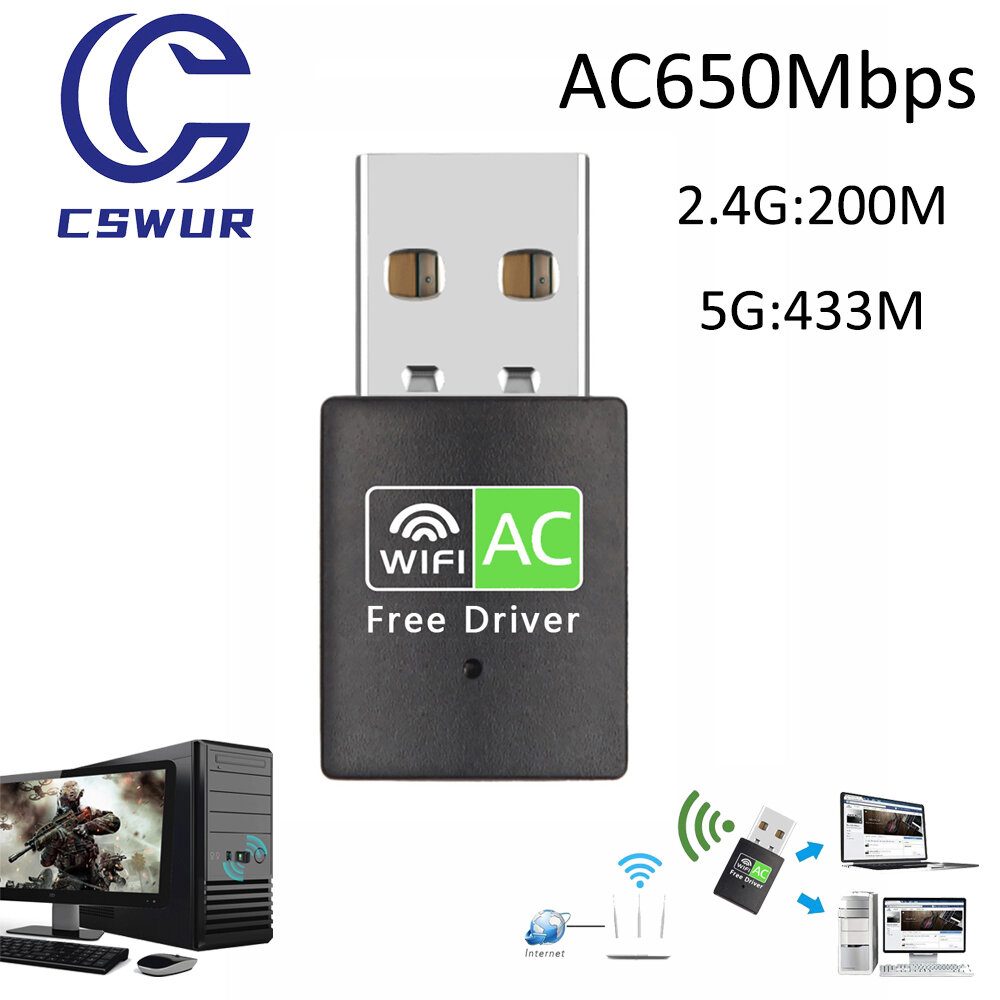 10 цен на Адаптер Cswur USB WiFi n/g/b/ac 650M, 2.4GHz+5GHz, 802.11ac