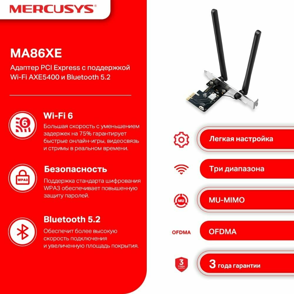 Трёхдиапазонный адаптер PCI Express MA86XE с поддержкой Bluetooth и Wi-Fi 6E AXE5400 информация: