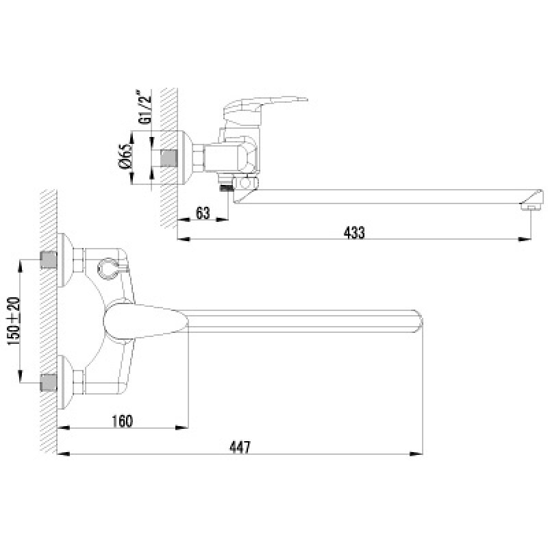 Смеситель на раковину настенный Эверест B46-350 с круглым поворотным изливом, кран-буксы 1/2", хром