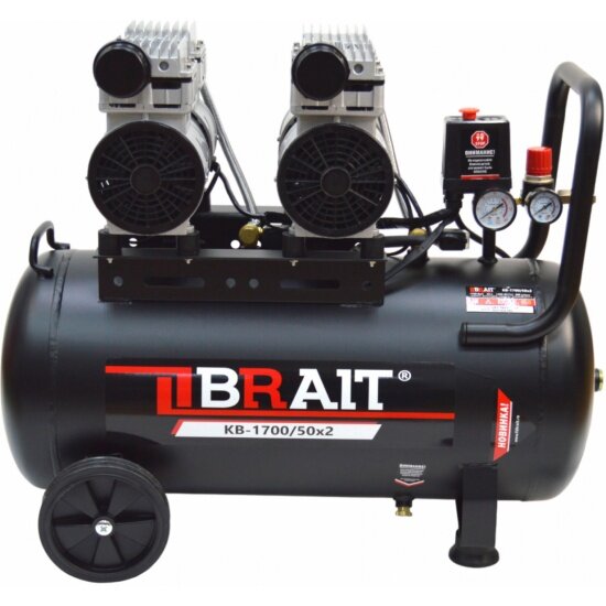 BRAIT Компрессор воздушный KB-1700/50X2 (50 литров; 1,7Kw; 8bar, 280л/ м; без масляный) информация: