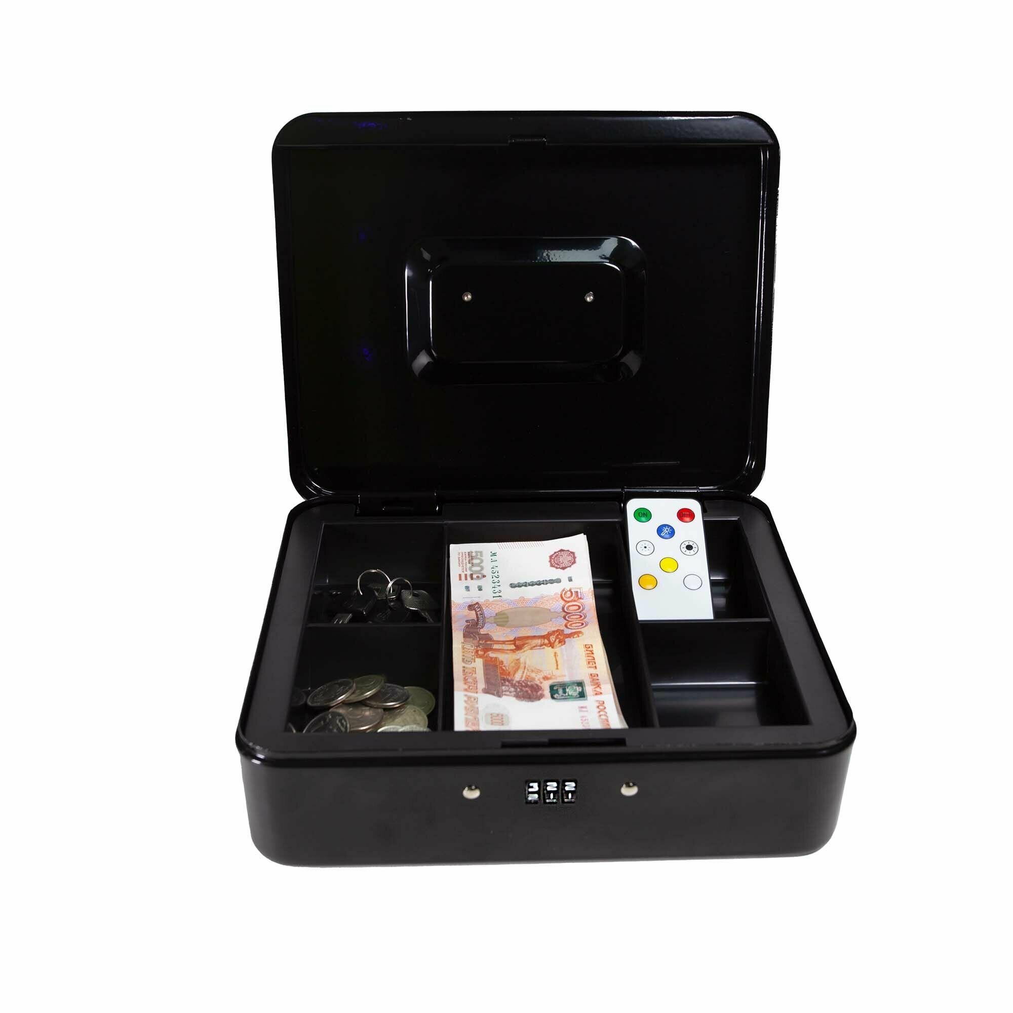 Ящик для денег и ценностей Baloo B-CB250C-BL 250x200x90мм кодовый, черный/ подарок мужчине информация: