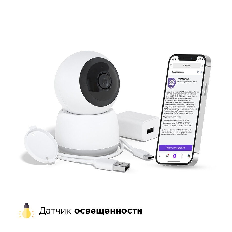 Умная камера Wi-Fi HD 360 c Яндекс Алисой, Goggle Assistant, поддержка карт памяти до 256Гб и облачное хранение информация: