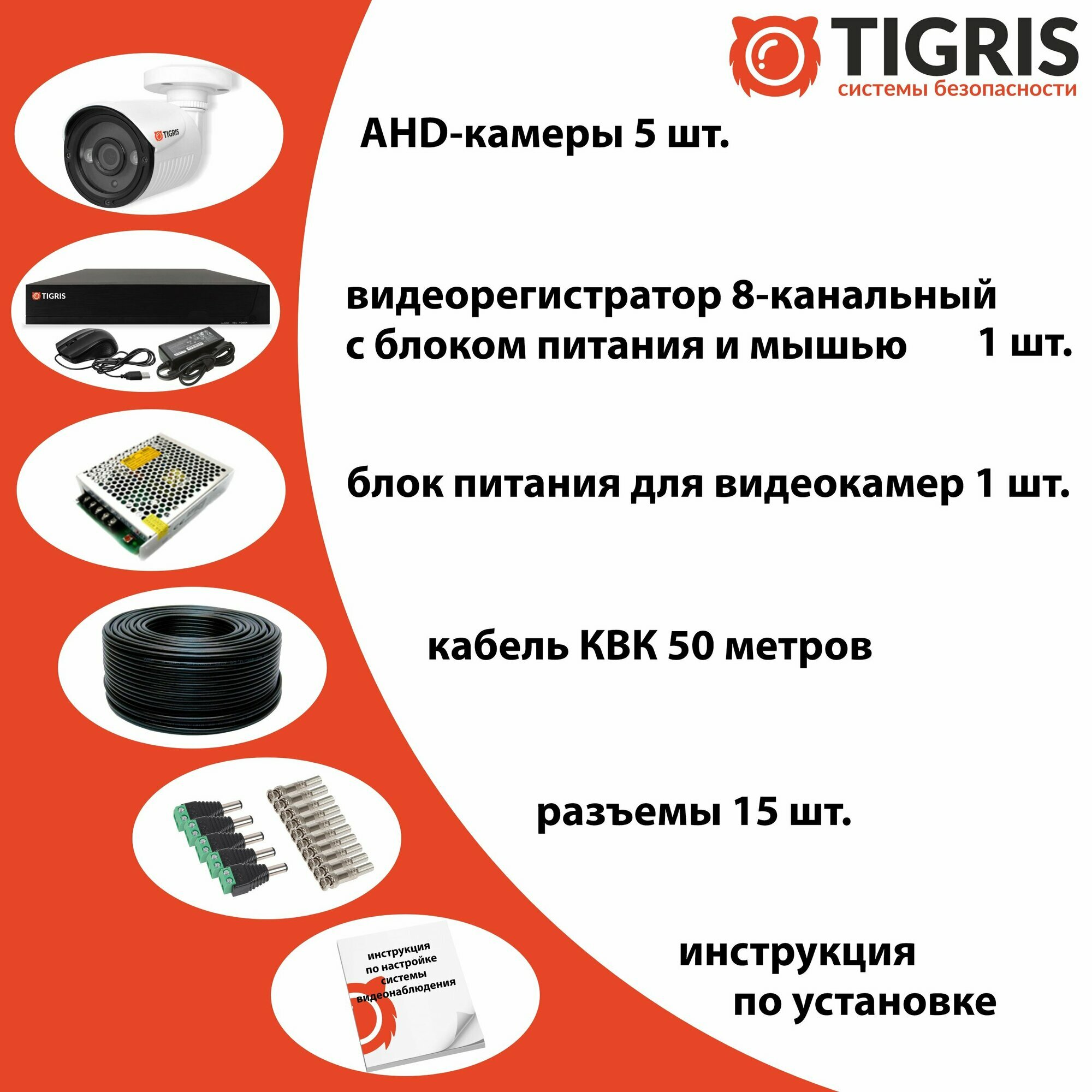 Готовый комплект видеонаблюдения FULL HD на 5 уличных камер информация: