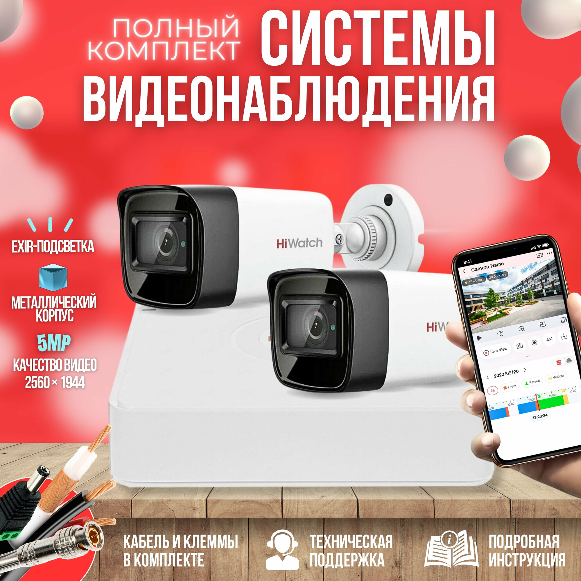 10 цен на Готовый комплект AHD видеонаблюдения 2 камера 5MP HiWatch KIT-A25HD