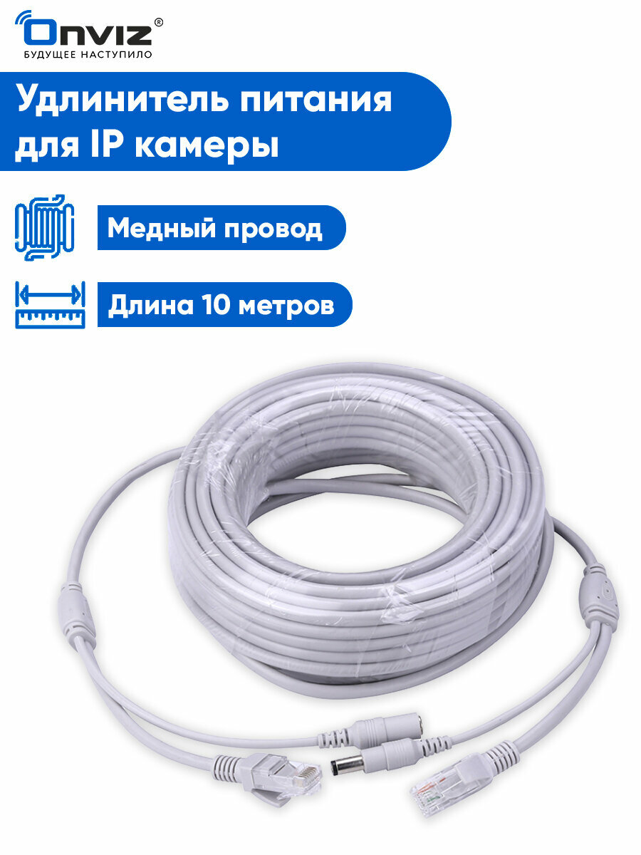 10 цен на Удлинитель питания + кабель Ethernet для IP камеры видеонаблюдения Onviz 10 метров / кабель питания для уличной камеры видеонаблюдения