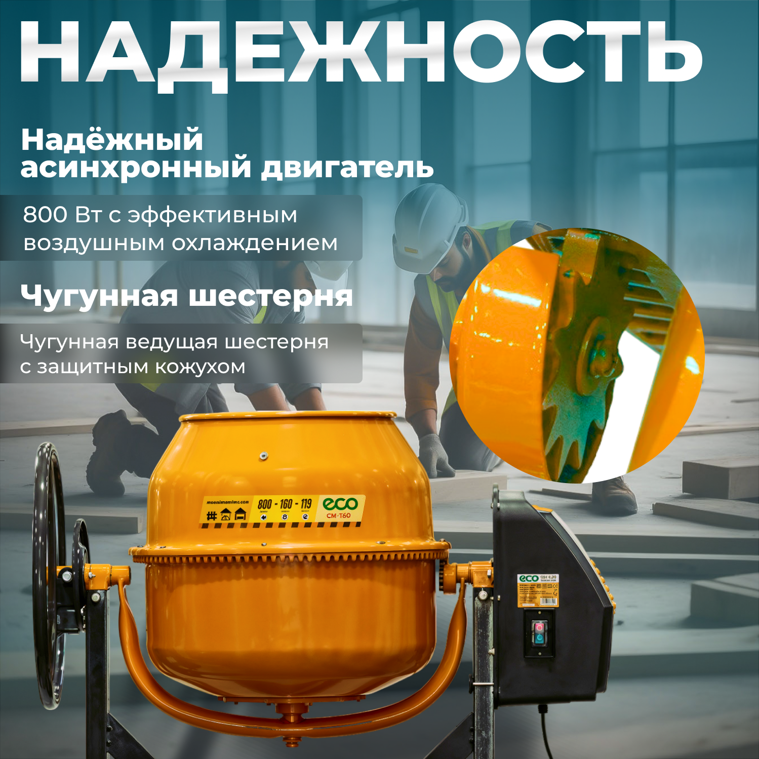 Бетономешалка электрическая ECO CM-160 (объём 160/119 л, 800 Вт, 230 В, вес 48 кг) (EC3410-5) информация: