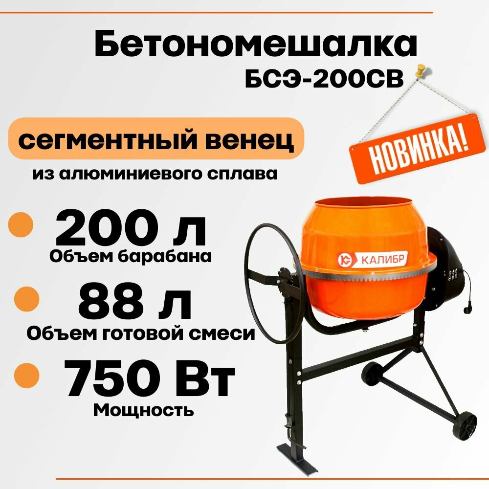 Бетоносмеситель Калибр БСЭ-160СВ сегментный венец из алюминиевого сплава, объем 160 литров, мощность 600 Вт, бетономешалка строительная