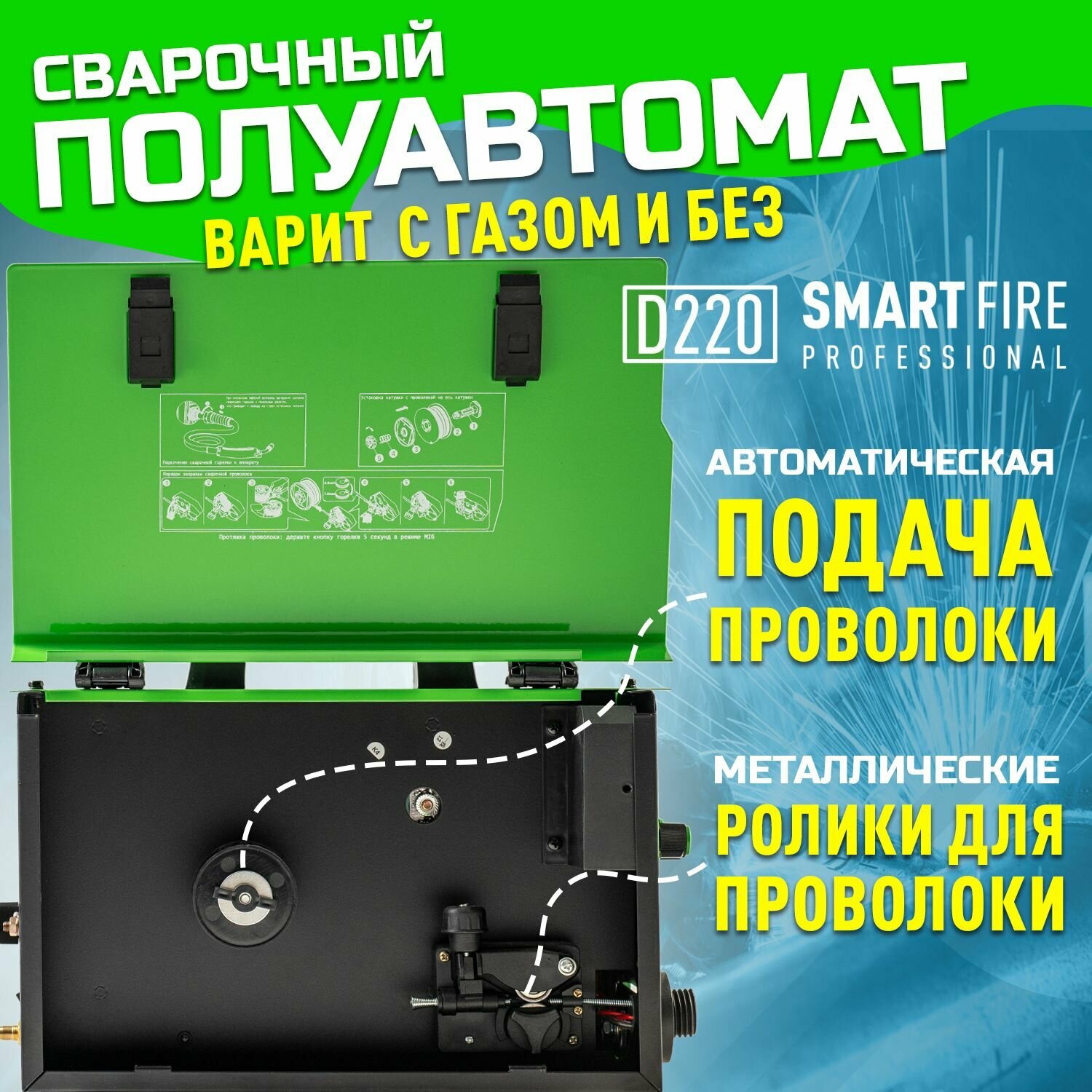 Сварочный аппарат полуавтомат FORSTER SmartFire D220/Полуавтоматический инвертор для сварки проволокой и электродом/ С газом и без газа информация: