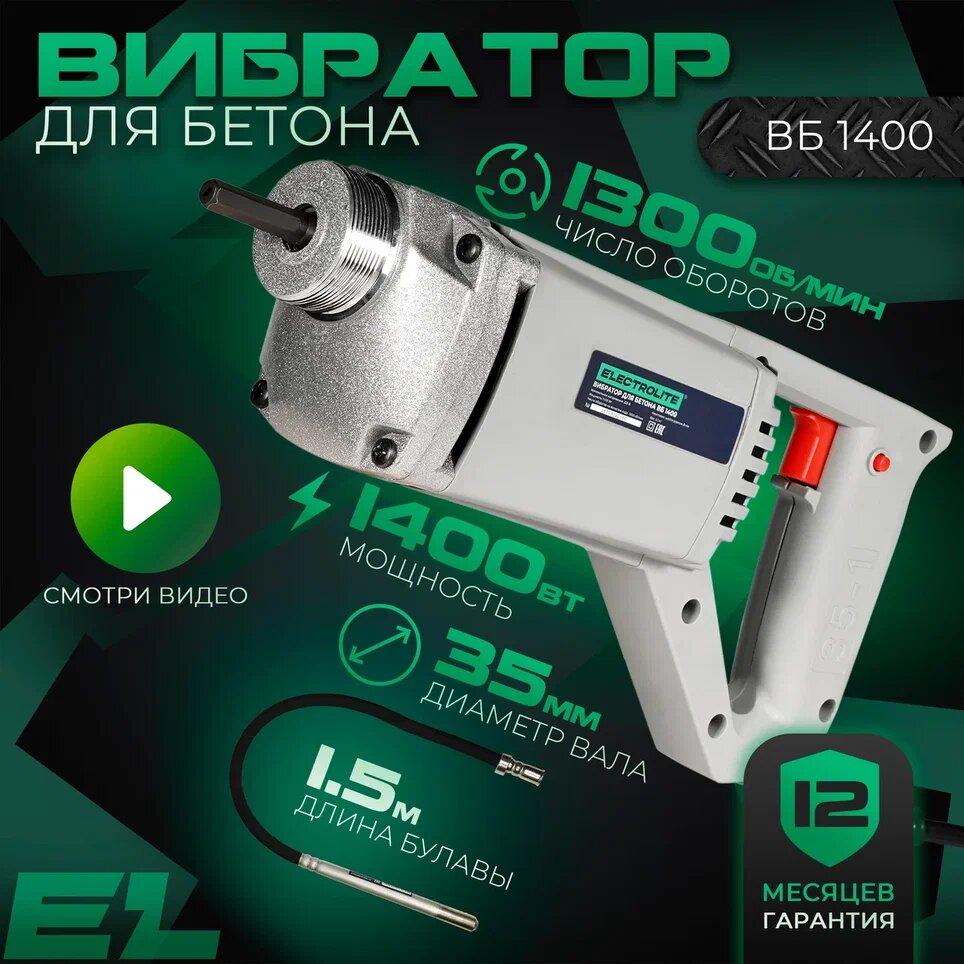 10 цен на Electrolite Вибратор для бетона ВБ 1400 ELВБ 1400 (ШК) (1400 В, 1,5 м булава, 35 мм диаметр булавы) 0015