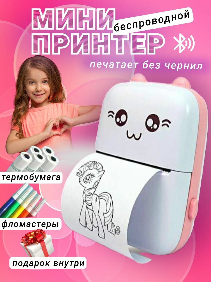 Мини принтер портативный для фотографий, этикеток, чеков, наклеек