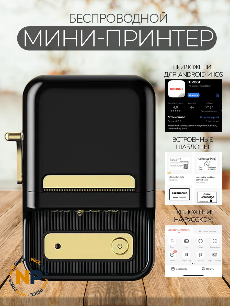 Мини принтер портативный для фотографий, этикеток, чеков, наклеек