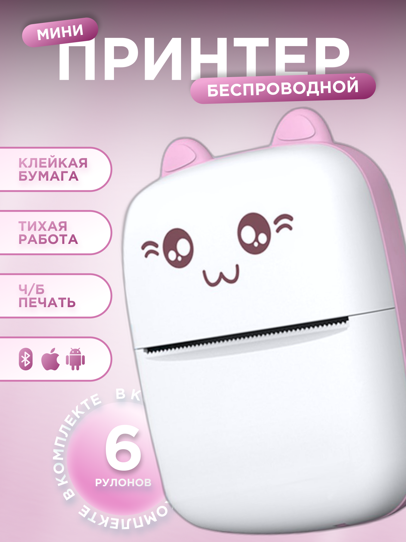 Мини принтер для телефона портативный без чернил