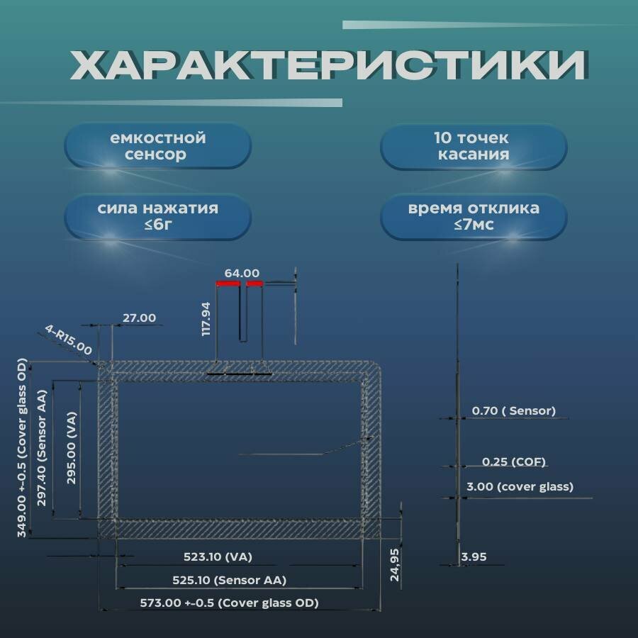 | Комплектация | Сенсорное емкостное стекло, контроллер, USB кабель |